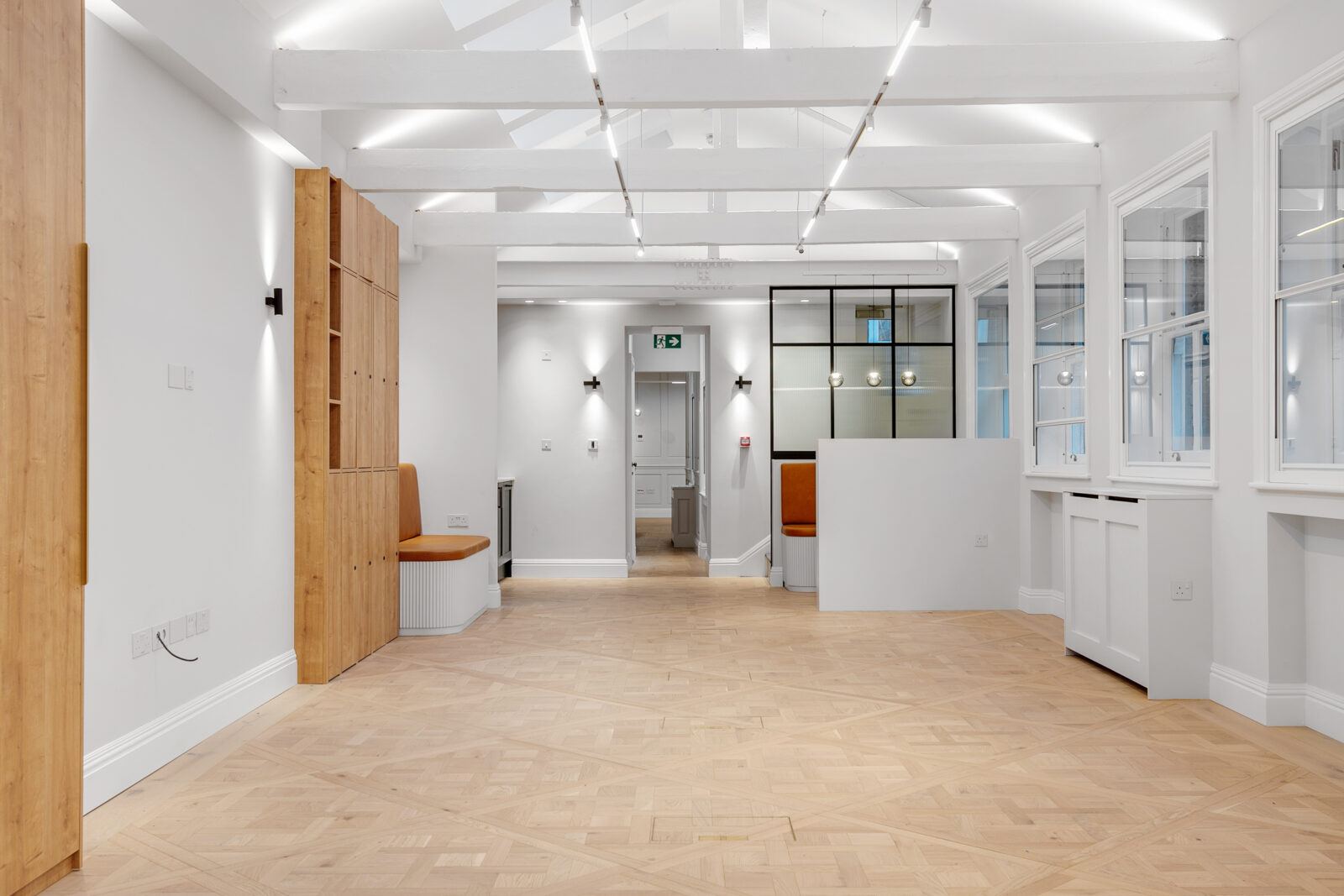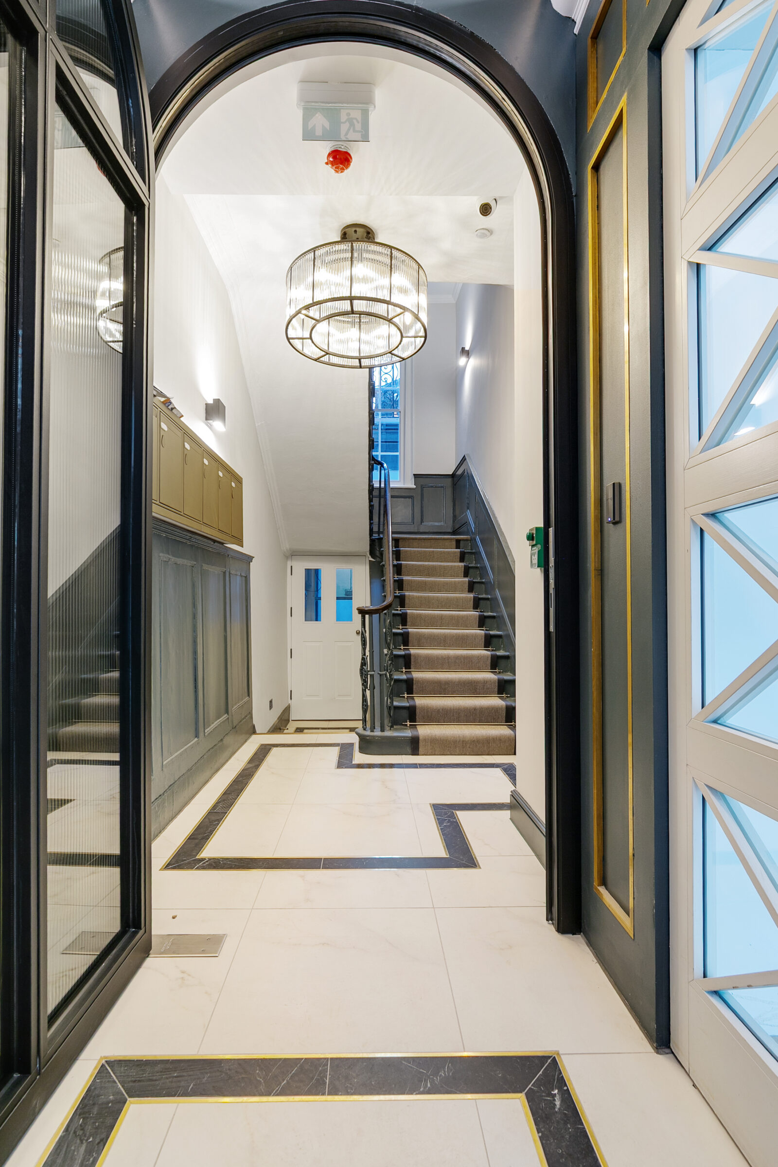 Our project at 42 Conduit Street involves a comprehensive refurbishment and retrofit of a Grade II Listed building located in the heart of Mayfair. This includes the fit-out of office spaces on the first to third floors and a residential unit on the fourth floor.