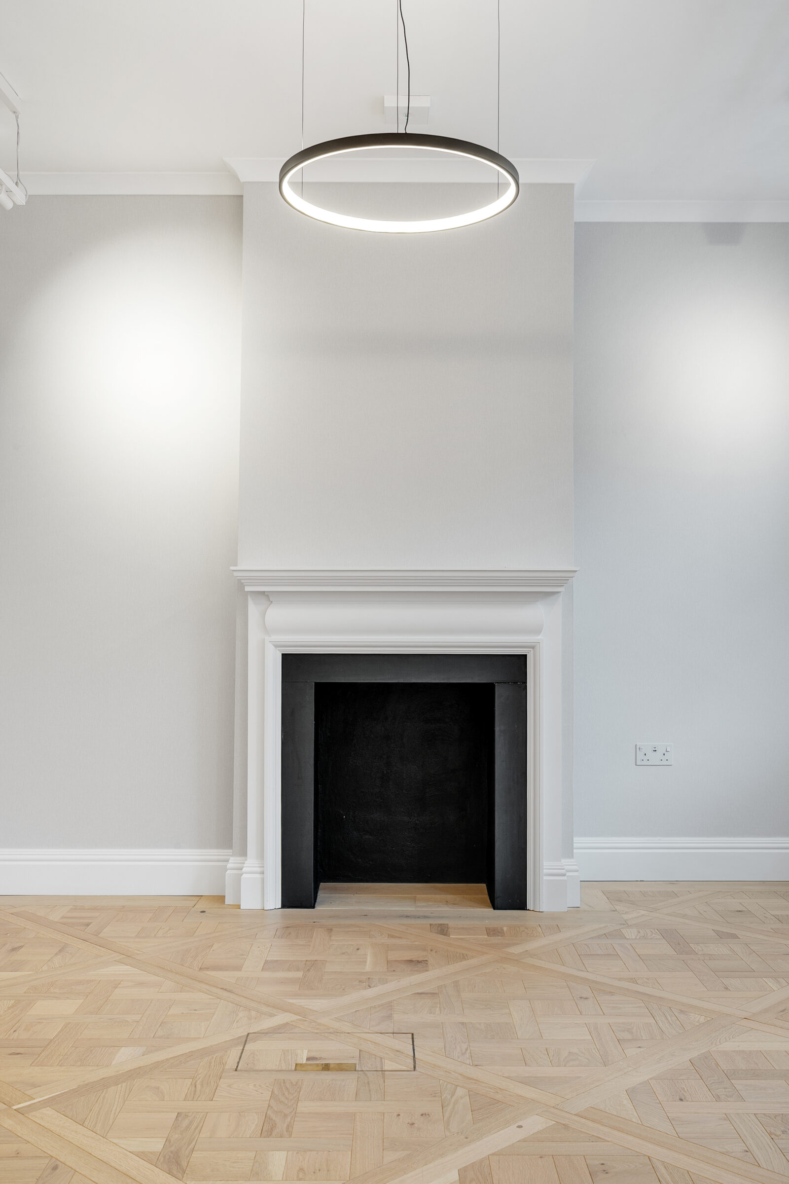 All of our design development was in full sympathy to the Grade II listing of the building, with new bespoke joinery panelling designed to match the existing heritage panelling, as well as preserving the existing ceilings and fireplaces throughout.