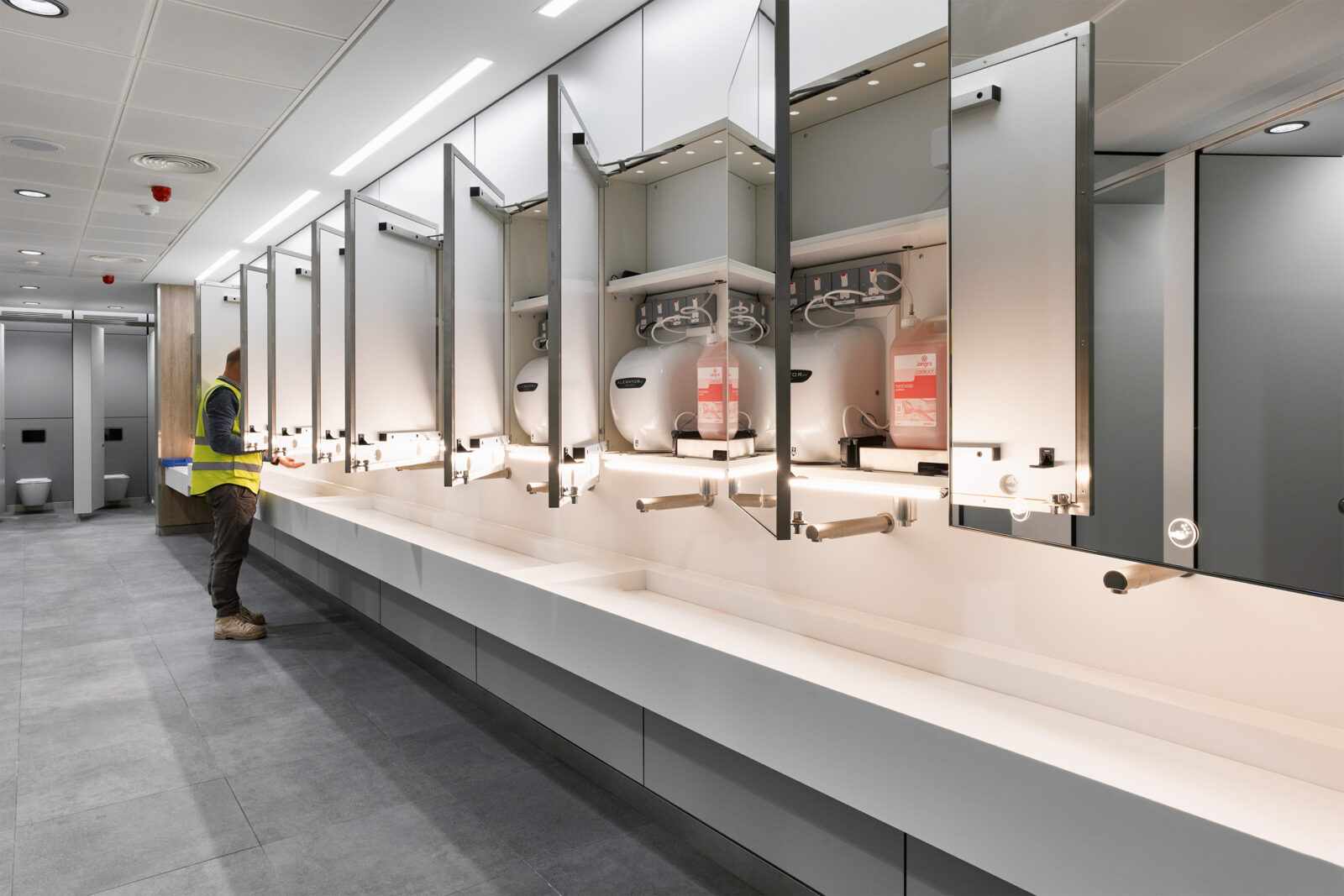 Works consisted of the strip out and replacement of the existing washroom with new modular facility units, to create a modern, comfortable and functional space for passengers.